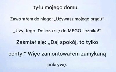 Pomarańczowy przedłużacz biegł przez mój trawnik niczym neonowa ścieżka, prosto z garażu sąsiada do mojego gniazdka na tylnej ścianie domu.…