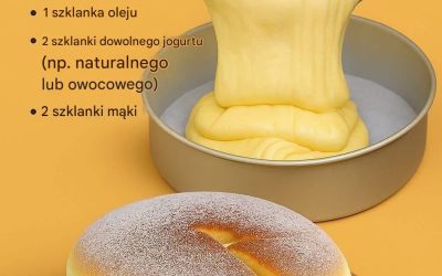 Składniki: 1 szklanka cukru 1 szklanka oleju 2 szklanki jogurtu do wyboru (np. naturalnego lub owocowego) 2 szklanki mąki 2…
