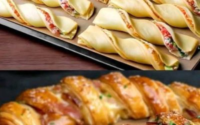 Warkocze z ciasta maślanego z szynką i serem Chrupiące, złocistobrązowe i nadziewane roztopionym serem – idealne jako przekąska, przystawka lub…