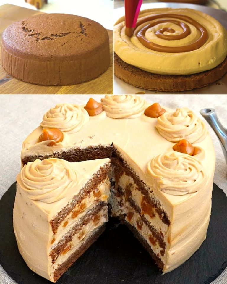 Składniki: BISZKOPT KAKAOWY: 3 jajka, 70 g cukru, 85 g mąki pszennej typu "00", 15 g kakao w proszku, 50 g mleka, 25 g oleju roślinnego, 3 g proszku do pieczenia. KREM KAWOWY: 8 g kawy rozpuszczalnej, 100 g śmietanki kremówki, 450 g mascarpone, 250 g śmietanki kremówki, 80 g cukru. SOLONY KARMEL: 100 g śmietanki kremówki, 100 g cukru, 35 g masła, 1 g soli