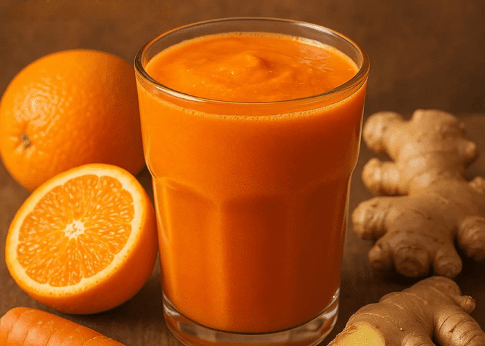 Do przygotowania tego napoju potrzebny będzie świeżo wyciśnięty sok pomarańczowy, oliwa z oliwek, imbir i czosnek. Wszystkie składniki mają doskonałe właściwości oczyszczające i odżywcze, które pomagają usuwać toksyny z wątroby .